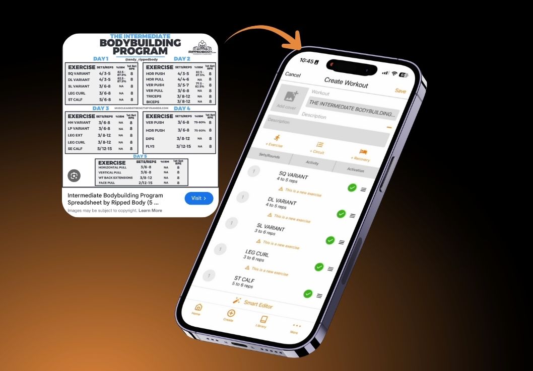 - Create guided digital workouts (time, reps, distance, intervals, circuits)